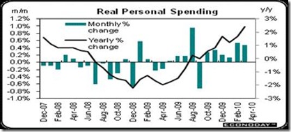 So the combination of lower inflation and higher personal incomes should keep consumers spending and stocks rallying that will prevent a ‘double-dip’ recession. Recessions are always and everywhere a deflationary phenomenon. I.e., prices fall because of a fall in demand, which means a slack economy, which leads to higher unemployment. But why do stocks tend to rally with low inflation? It is a sign that investors appetite for risk is returning, in anticipation of a recovery.
